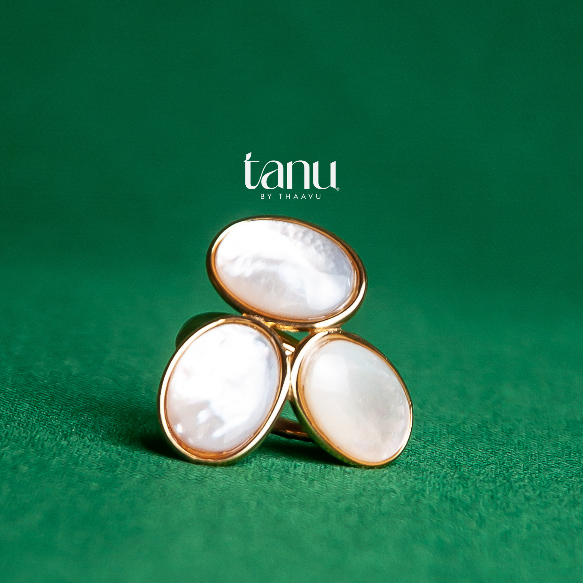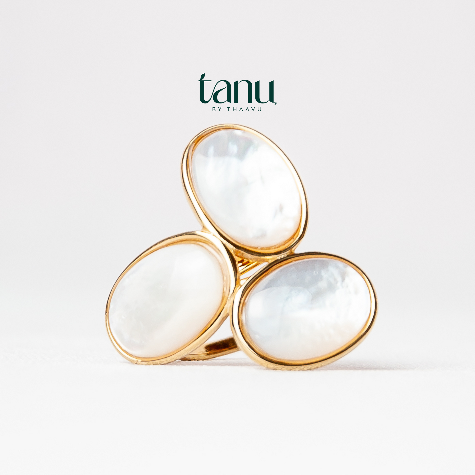 Ever noticed how the right ring can transform your entire look? That's Nzisa for you. Three lustrous pearl stones catch and play with light, creating a piece that feels both bold and effortlessly elegant. The adjustable band ensures your perfect fit, every time.