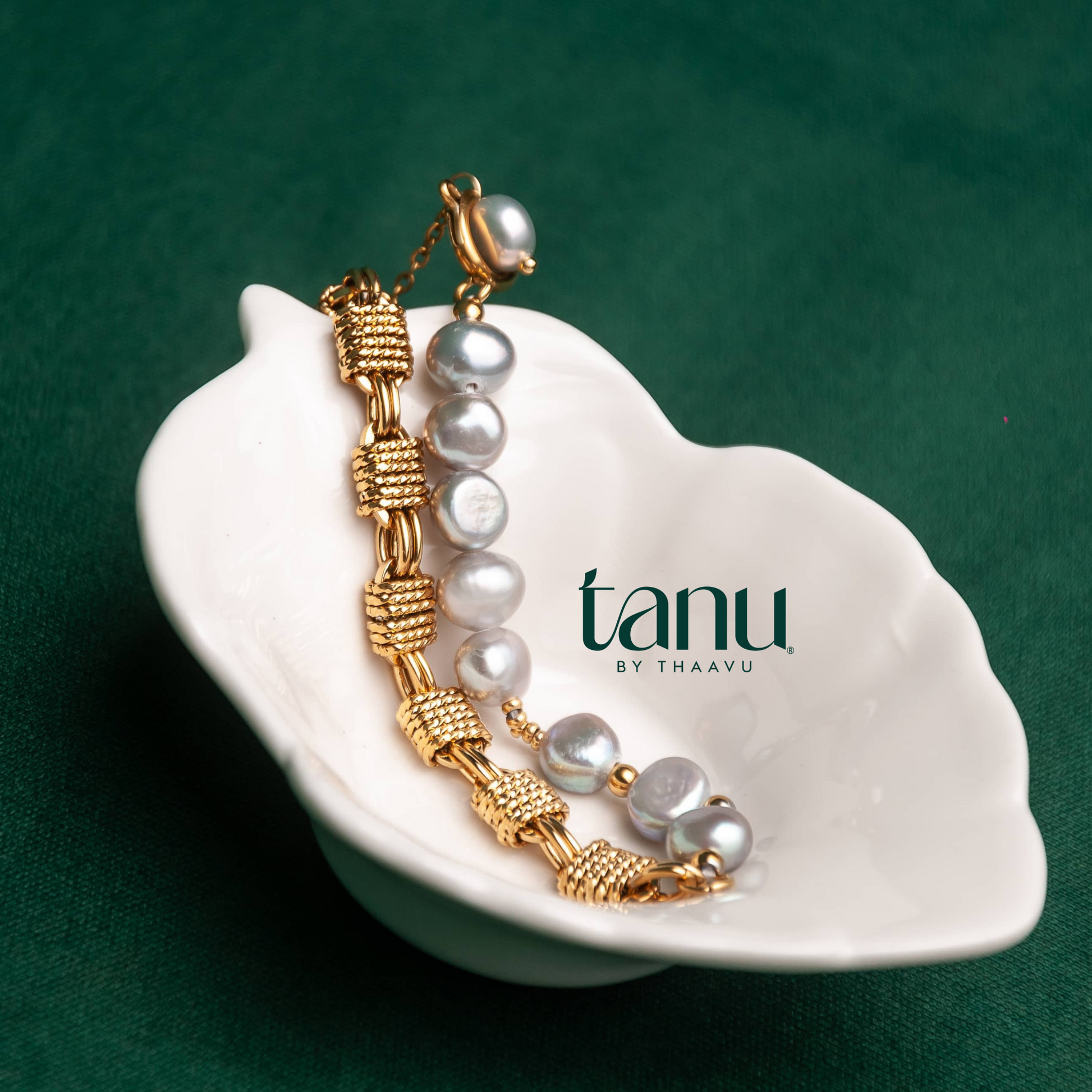 Talk about the best of both worlds – this little beauty is serving up gold glamour on one side and pearl elegance on the other.