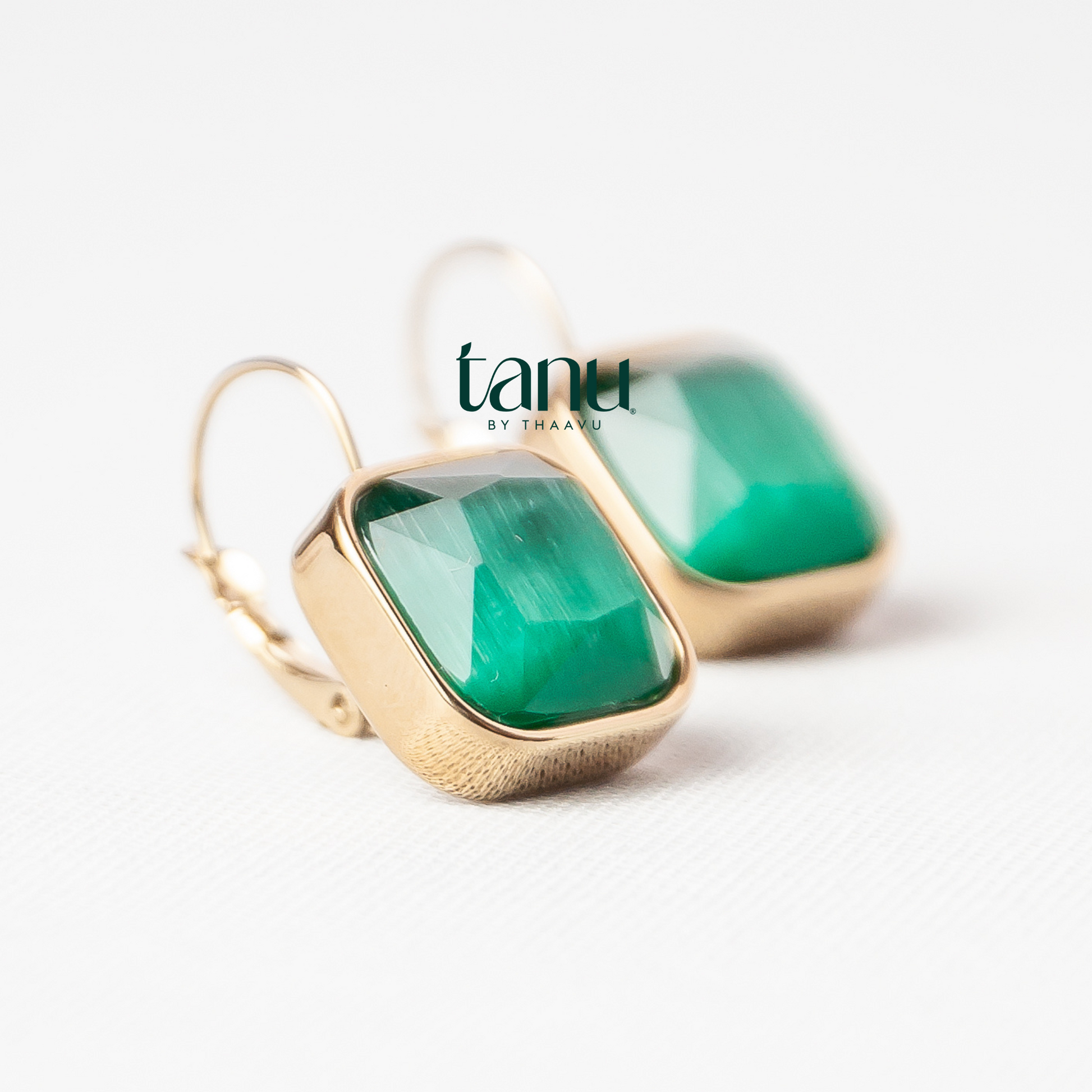 Ever noticed how the right pair of earrings can make you feel instantly put-together? These are those earrings. Featuring faceted emerald green crystals that catch light from every angle, set in warm gold-toned stainless steel that stays brilliant day after day.